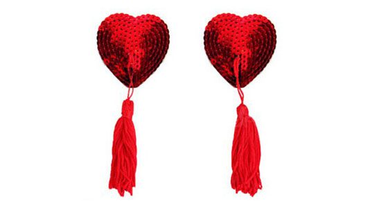 Cubre Pezones de silicona con forma de corazon en color rojo y nergo
